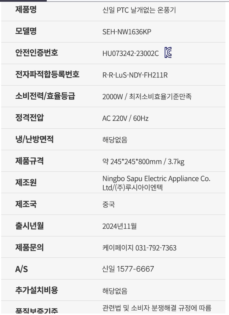 신일PTC온풍기 날개없는온풍기 가정용 전기열풍기 PTC히터 : 신일 온라인스토어