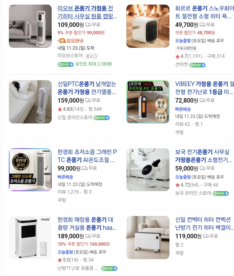 1등급 온풍기,가정용 사무실용, 온풍기 가격비교